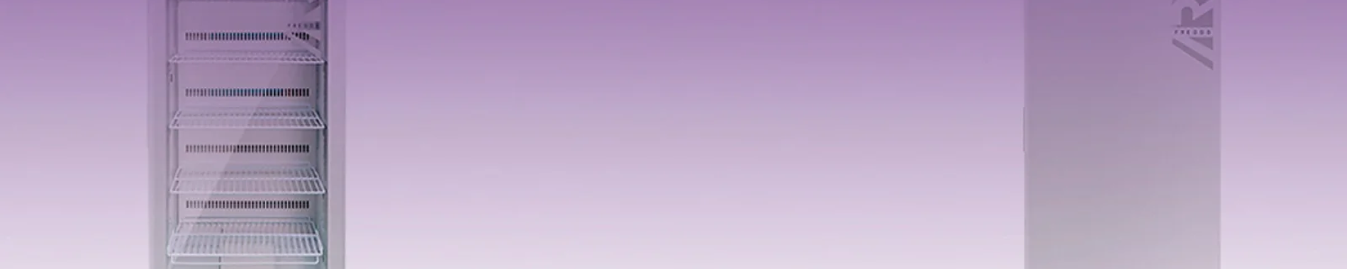 Congelatori professionali per impieghi di laboratorio con display digitale e controllo elettronico, funzione sbrinamento, allarmi di temperatura e porta aperta.
